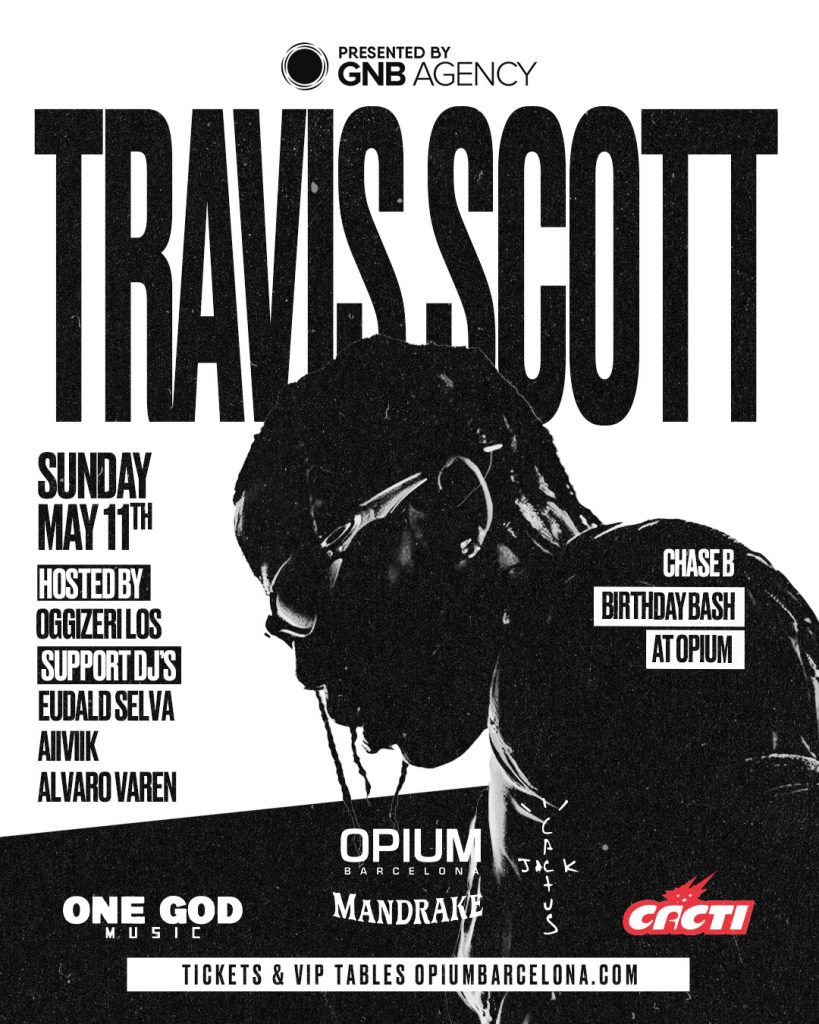 Travis no es de los que se suben a un escenario a cumplir. Lo suyo es más bien un ritual colectivo: luces, pantallas, humo, energía cruda y un sonido que no da tregua. Una experiencia total. Que lo haga en una sala como Opium, con vistas al mar y ese aire de exclusividad tan barcelonés, solo suma al plan.