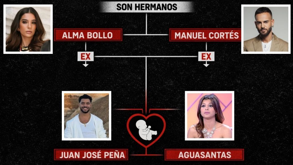 Para entender por qué esto está dando tanto de qué hablar hay que ir paso a paso. Aguasantas mantuvo una relación con Manuel Cortés, mientras que Juan José Peña fue pareja de Alma Cortés, hermana de Manuel. Es decir, ambos han estado vinculados sentimentalmente a dos hermanos.